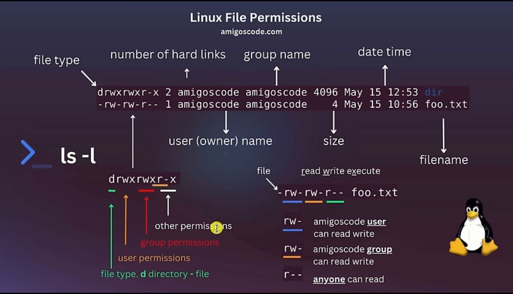 Jede Datei hat einen Besitzer und eine Gruppe. Gruppen können mehrere Benutzer enthalten und ein Benutzer kann Mitglied mehrerer Gruppen sein.